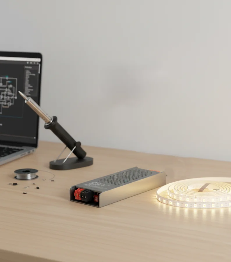 - روشنایی LED: این منابع تغذیه برای راهاندازی انواع سیستمهای روشنایی LED مانند چراغهای نواری، چراغهای خطی (لاینر)، چراغهای استخری و نورپردازیهای نما استفاده میشوند.