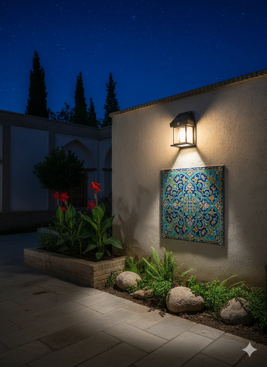 چراغ دكوراتيو ديواري شارژي داراي فتوسل داراي پنل خورشیدی برای شارژ
